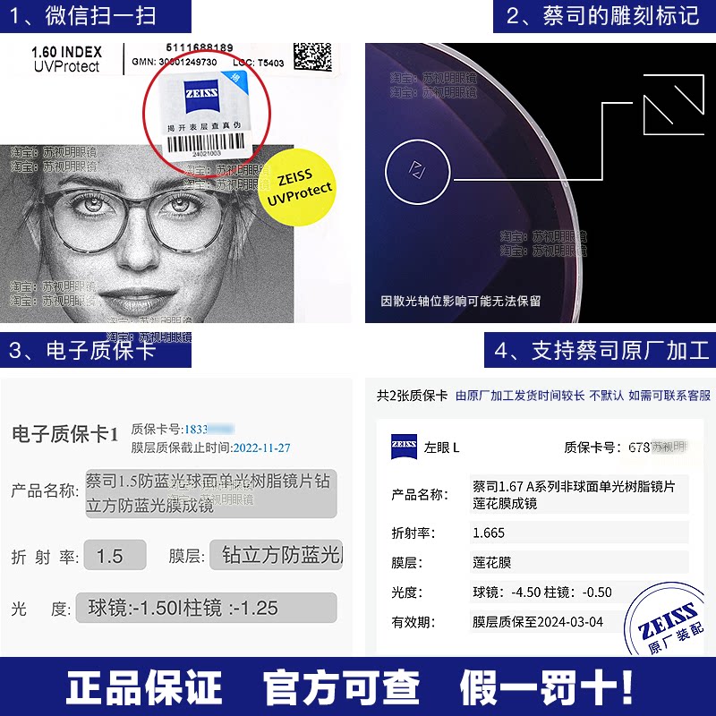ZEISS Lens 1 60 Drilling square anti-blue light intelligent plus new sharp platinum film Zeyi lens myopia mirror
