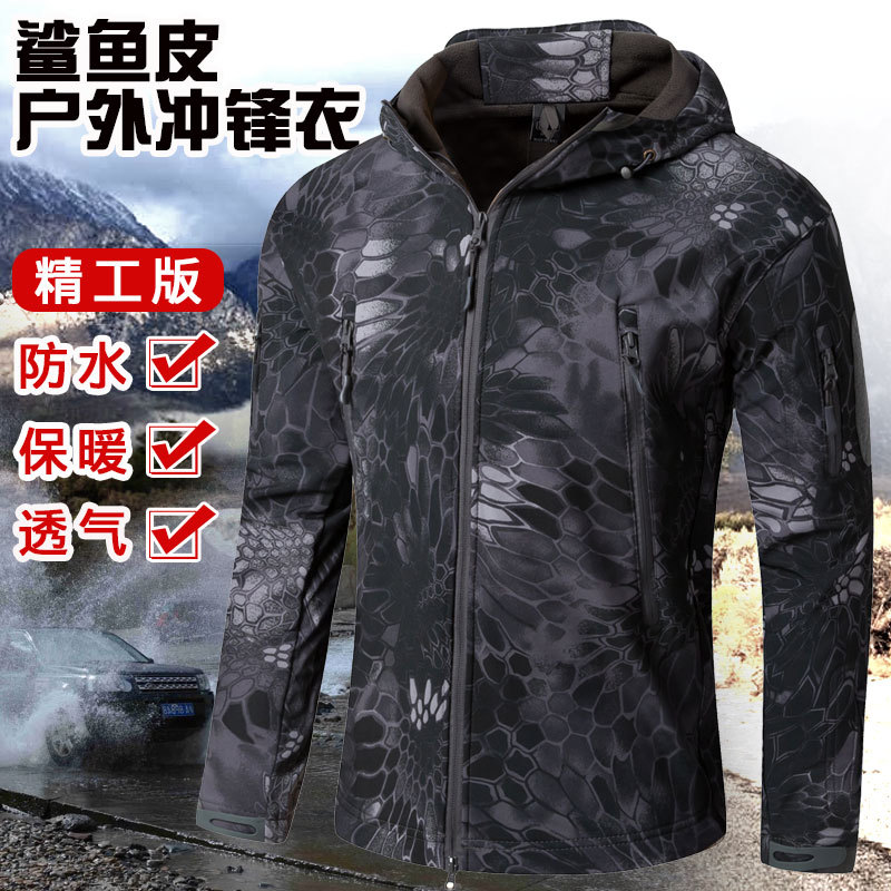 Outdoor soft shell jacket men and women autumn and winter waterproof windbreaker fleece camouflage mountaineering clothing military fan tactical jacket