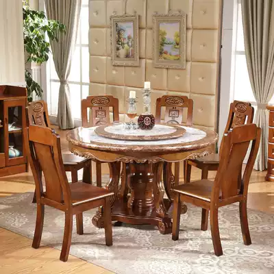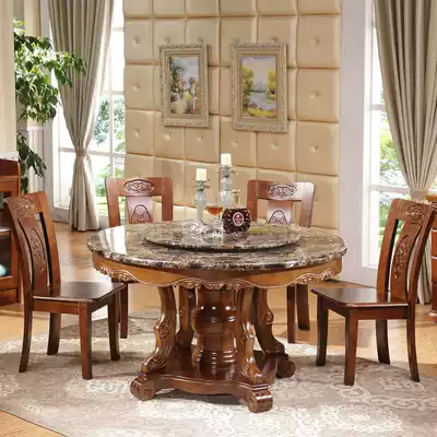 Chinese solid wood dining table chair combination marble round dining table 10 people with turntable 8 people dining table home