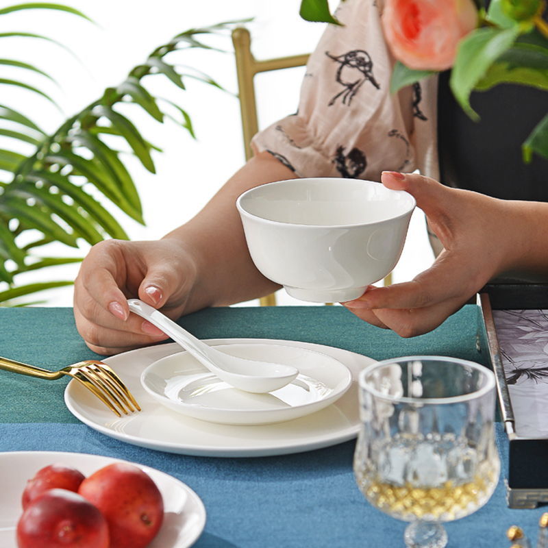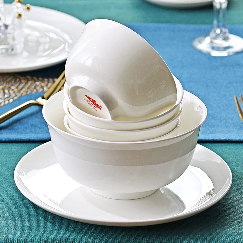 Tangshan Red Rose Bone China Porcelain Cutlery Cutlery Sets Household Dish Minimalist Pure White Bowl Pan Chinese Dishwasher applicable