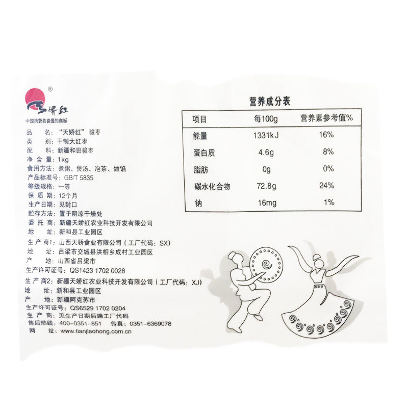 Tianjiaohong Xinjiang and Tian Jun Zaozao 6 stars red date red dates and field star 1000g can pinch walnut snacks