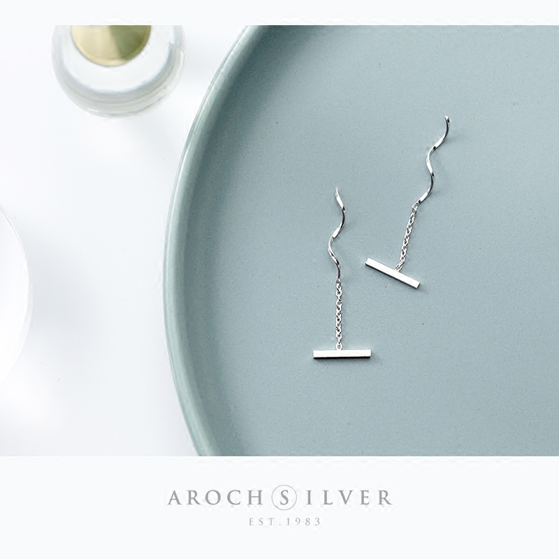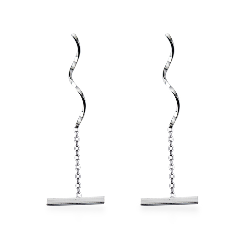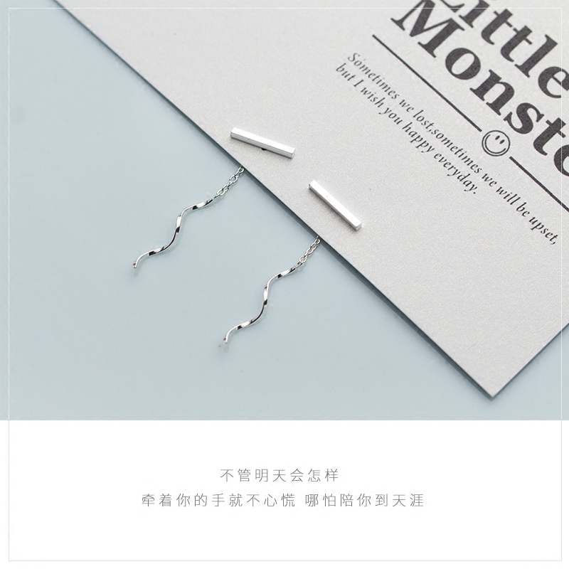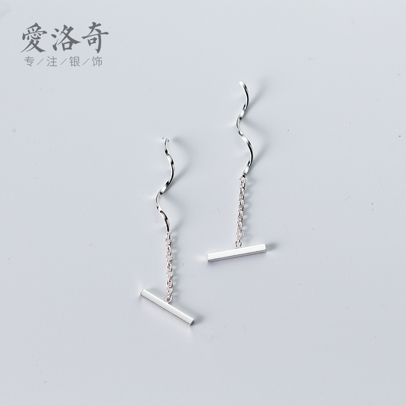 Love Rocky s925 silver ear line female Japanese and Korean style personality word wave earrings simple earrings earrings jewelry