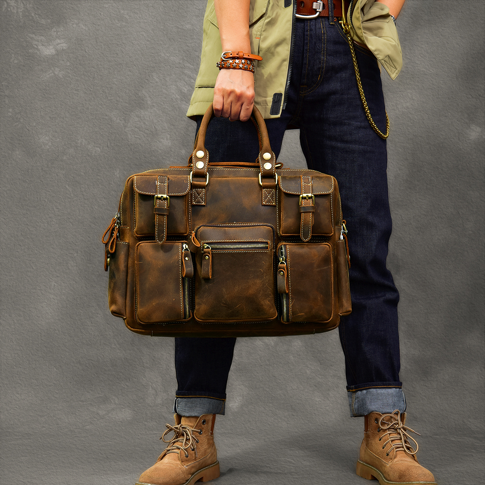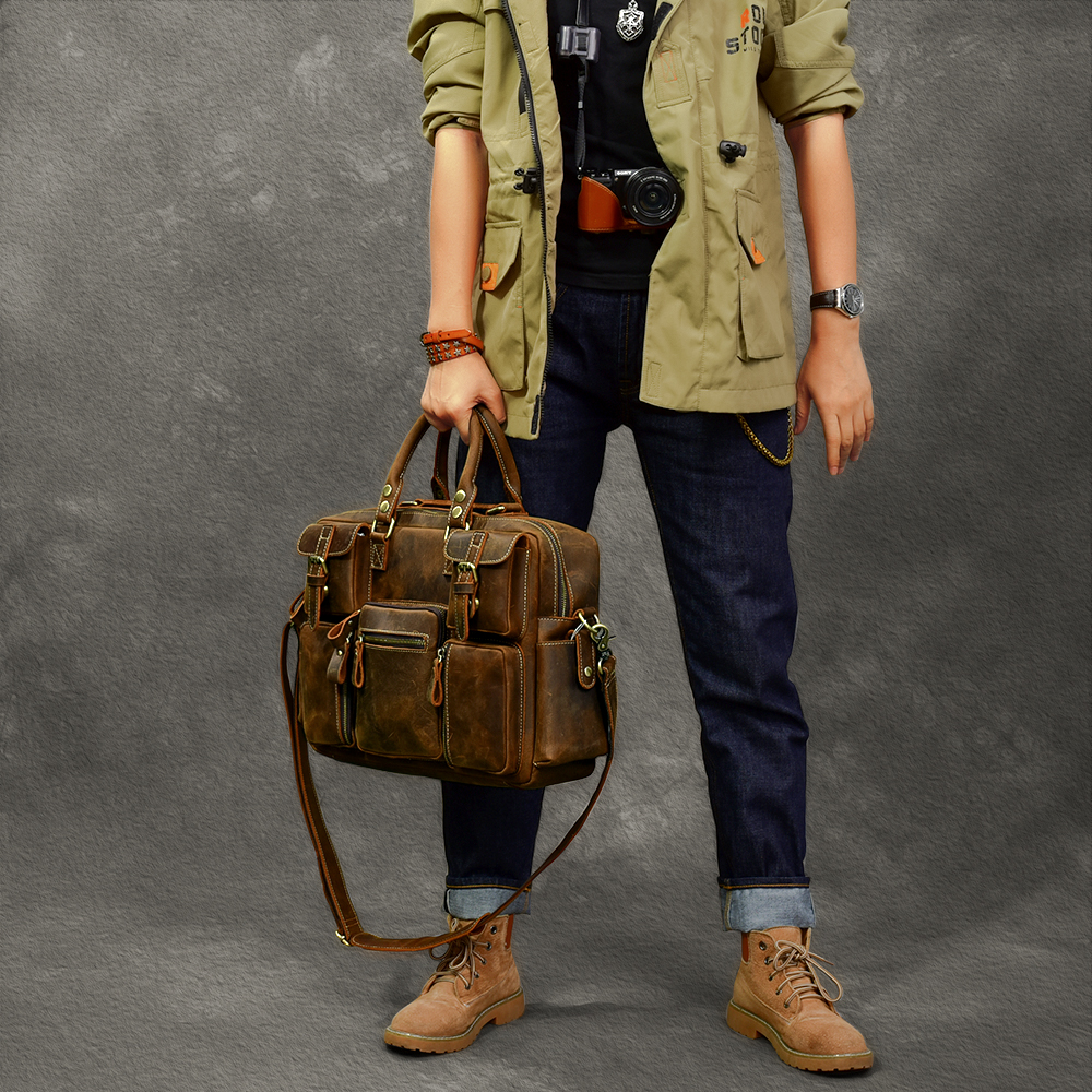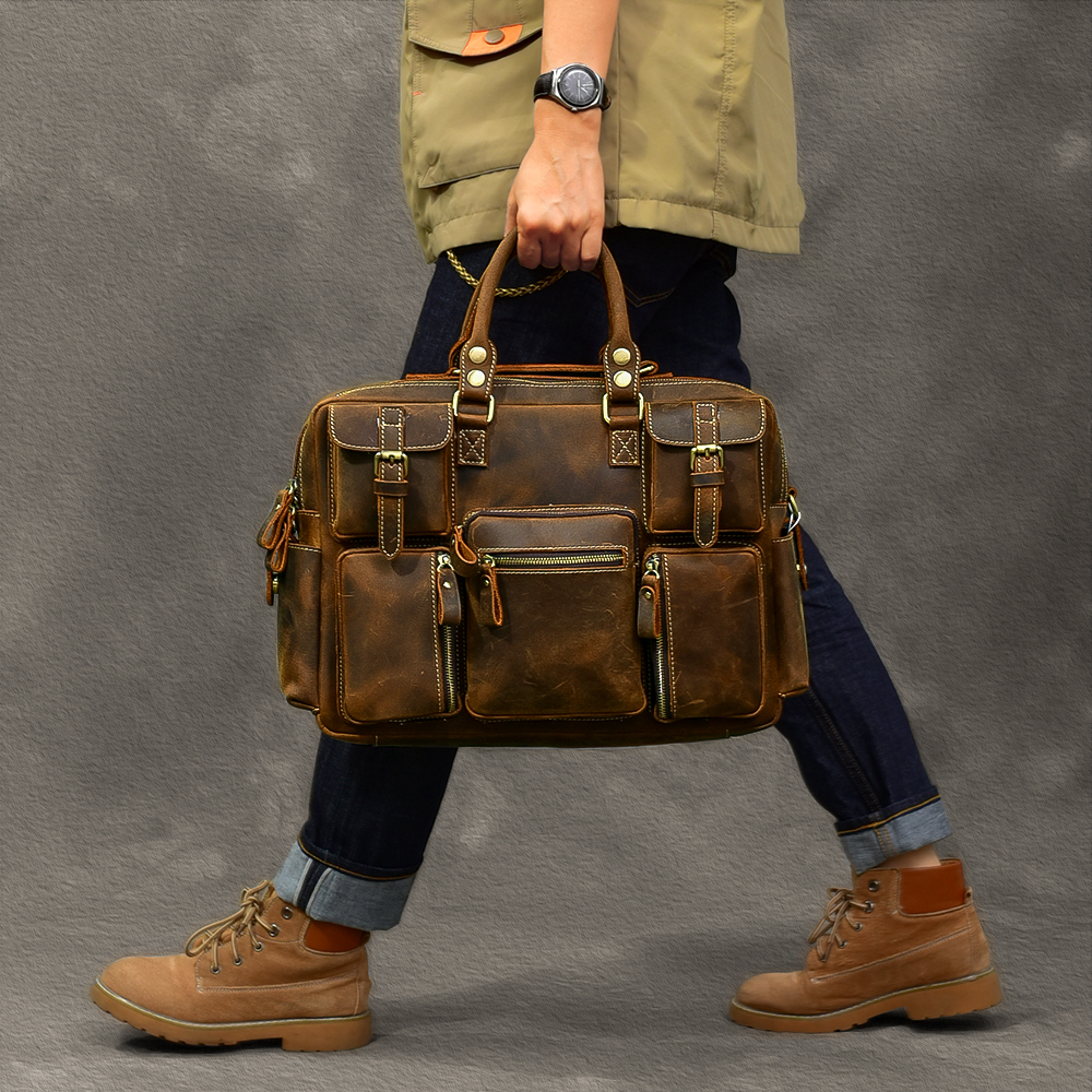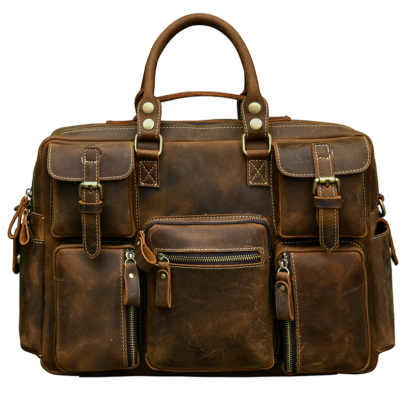 24th Street retro - European and American hand carrying mad horse skin travel bag bull skin large capacity single shoulder bag