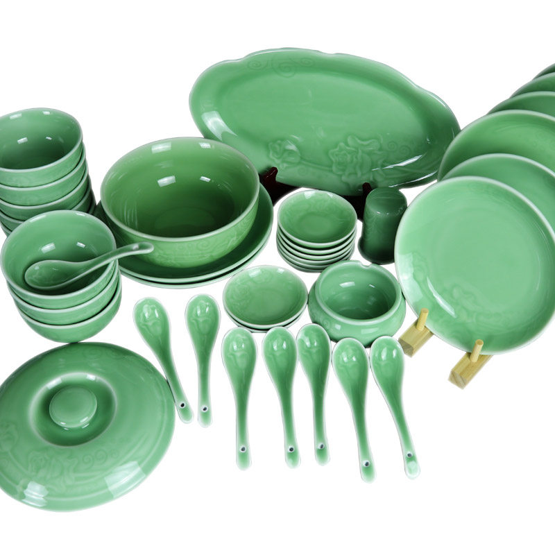 Dragon Springs Blue Porcelain Healthy Cutlery Joe Relocation Gift Rose Pattern Plate Rice Bowls Spoon Vegetable Dishes Hotel Catering