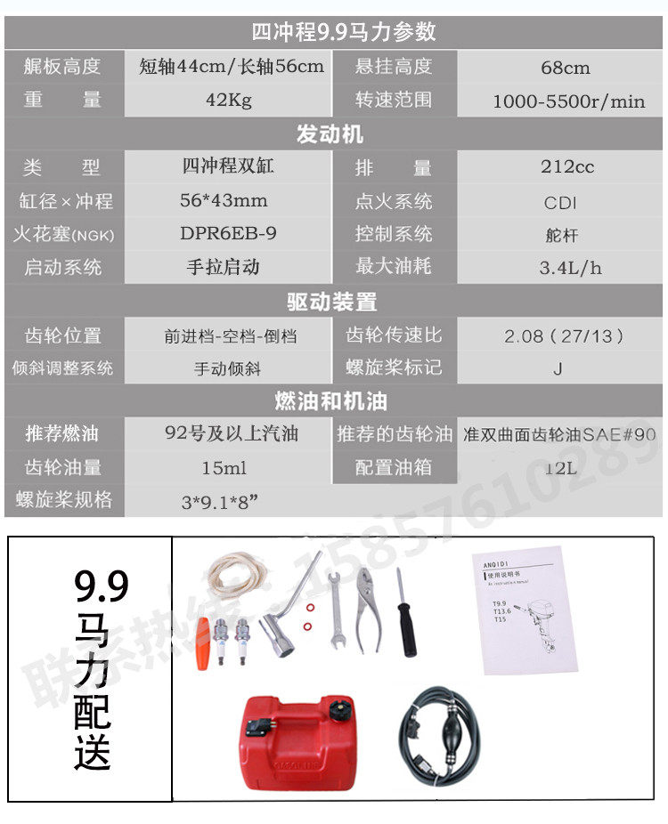 Anqidi four-stroke 9 9 horsepower water-cooled gasoline engine outboard propeller fishing boat assault boat rubber boat wall-mounted air conditioner