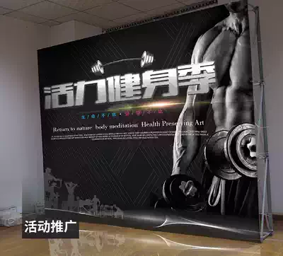 Aluminum alloy round tube pull net display rack advertising outdoor folding background wall display frame poster rack can be customized