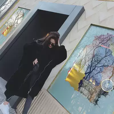 2021 new autumn and winter hooded loose Korean bf lazy wind plus velvet thickened lamb plush sweater coat women