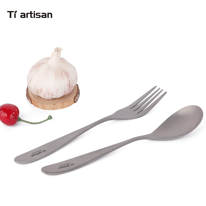 Titanium cutlery spoon sandblasted titanium cutlery fork sandblasted sandblasted cutlery fork spoon set