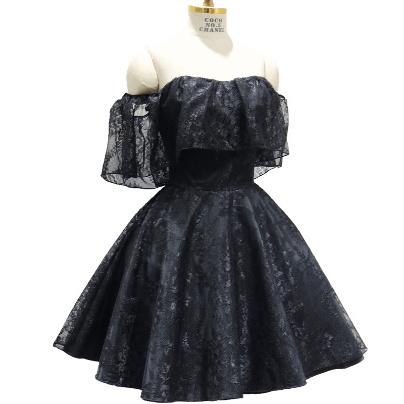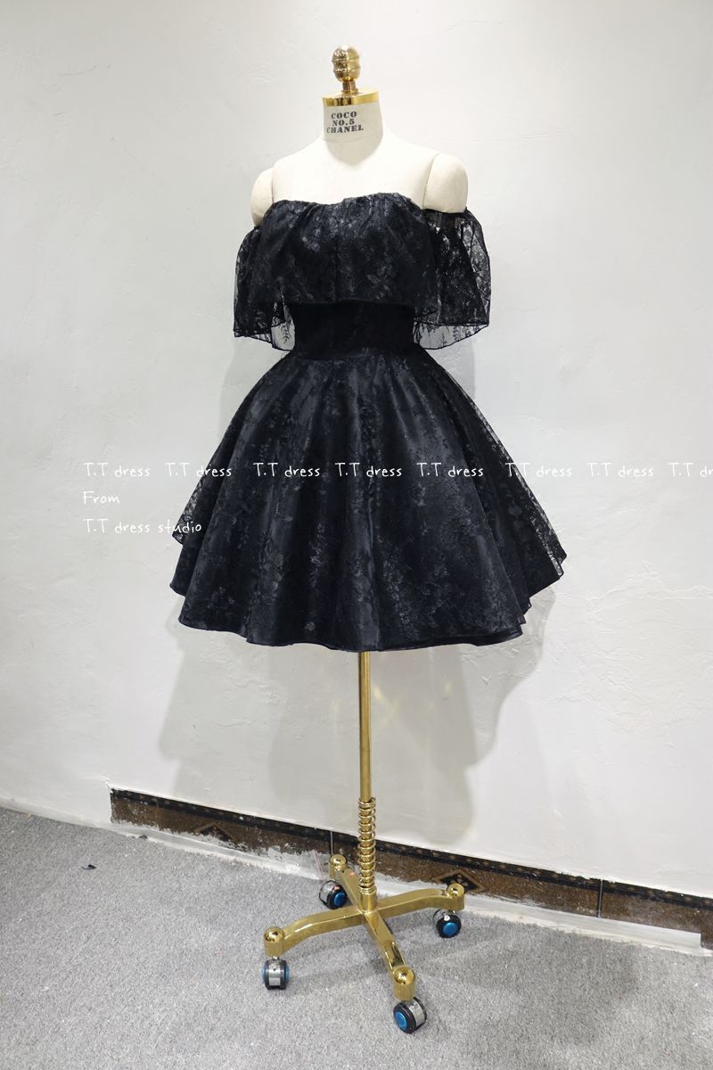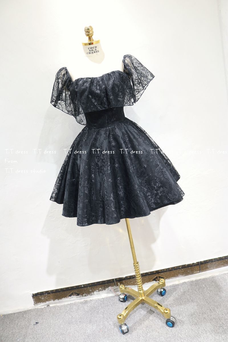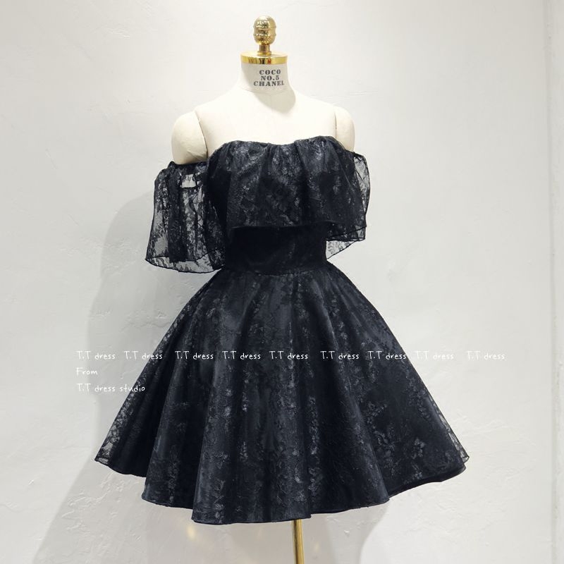 Fashionable and slim black annual party evening dress short one-shoulder banquet party catwalk small dress evening dress tutu skirt