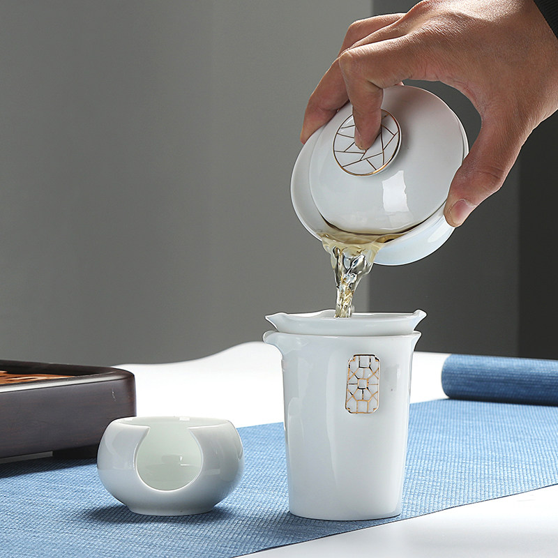 Chenxiang) Dehua White Porcelain Trace Gold Tea Filter Handmade Tea Set Ceramic Tea Separator Filter Tea Ceremony Accessories Porcelain Tea Drain
