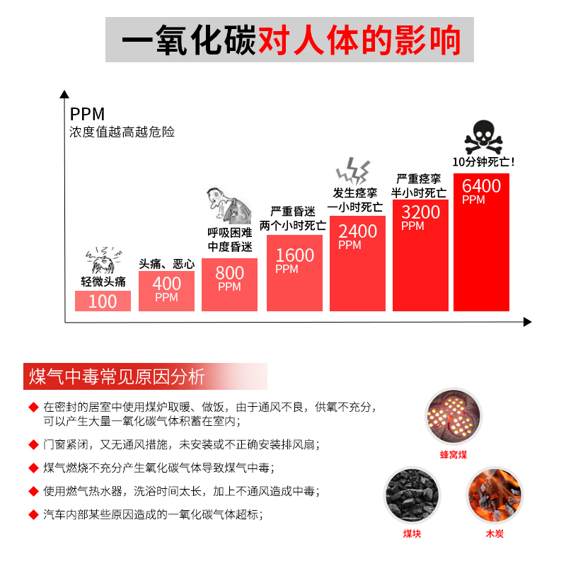 Carbon monoxide alarm co detector Leak detector Honeycomb carbon gas household combustible gas alarm