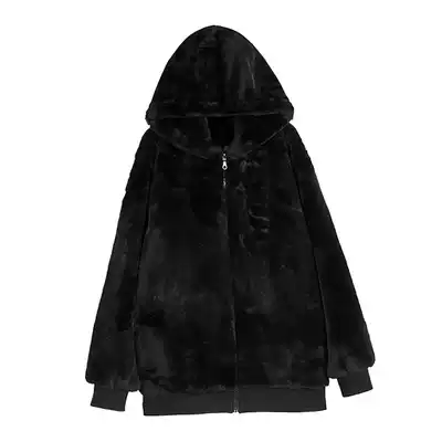 2021 Winter new Korean furry sweater women's long version of chic loose plus velvet hooded lazy coat women