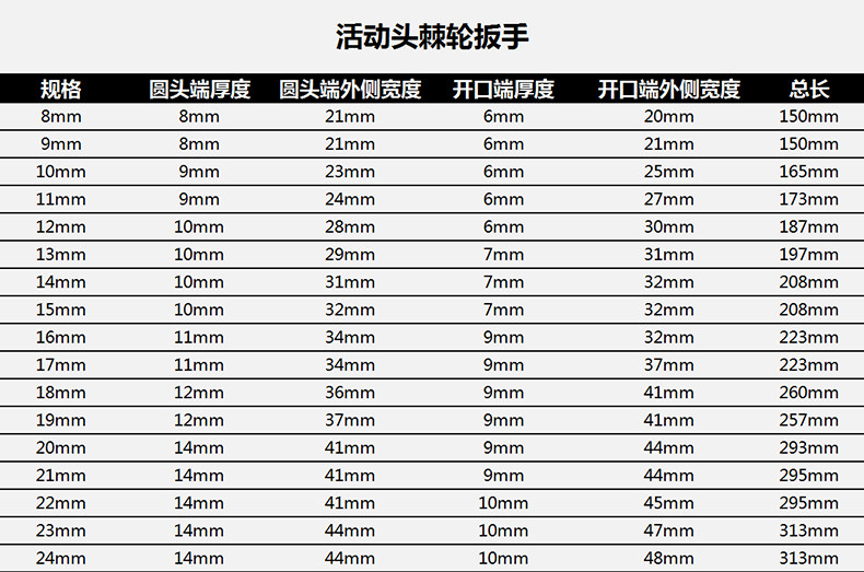 Active Head Ratchet Wrench-8mm Active Head Ratchet Wrench-9mm Movable Head Ratchet Wrench-10mm Active Head Ratchet Wrench-11mm Active Head Ratchet Wrench-12mm Active Head Ratchet Wrench-13mm Movable Head Ratchet Wrench-14mm Active Head Ratchet Wrench-15mm Movable Head Ratchet Wrench-16mm Active Head Ratchet Wrench-17mm Movable Head Ratchet Wrench-18mm Active Head Ratchet Wrench-19mm Active Head Ratchet Wrench-20mm Movable Head Ratchet Wrench-21mm Active Head Ratchet Wrench - 22mm Movable Head Ratchet Wrench - 23mm Movable Head Ratchet Wrench - 24mm
