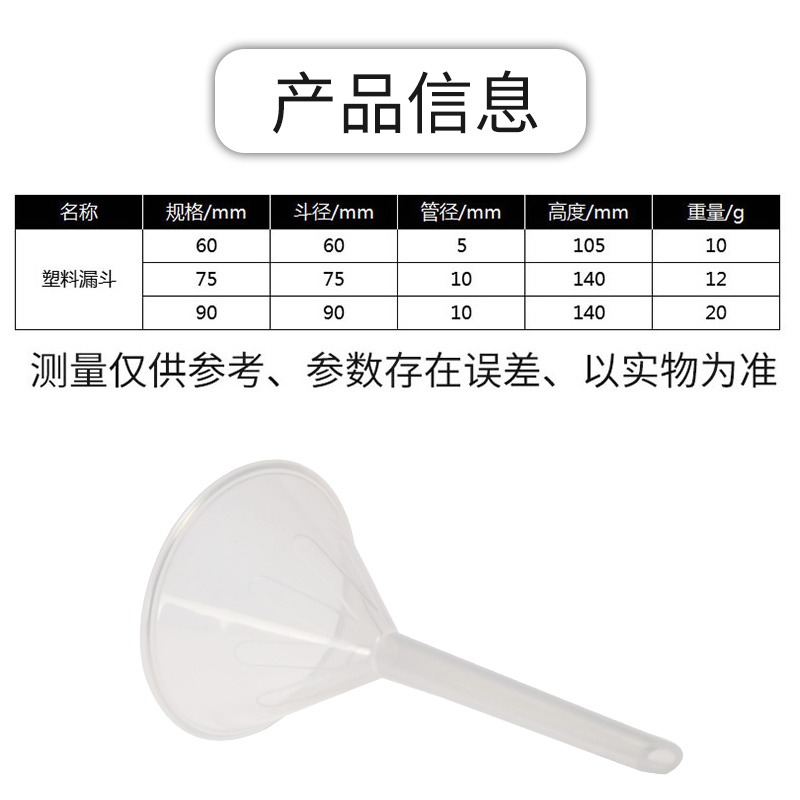 Short standard plastic funnel 75mm transparent small oil funnel PP material high pressure laboratory triangular funnel