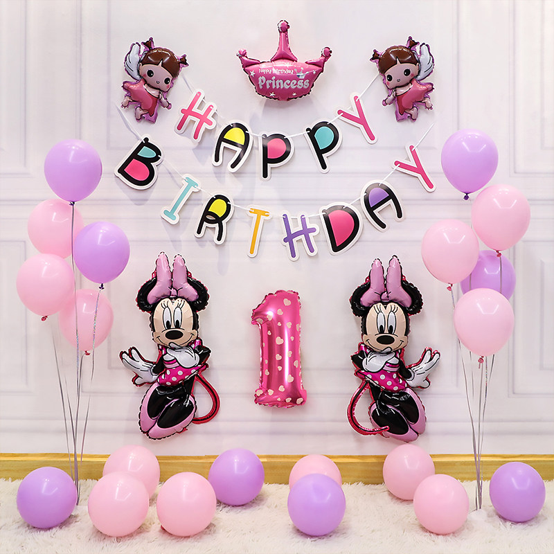 Girl baby Girl first anniversary birthday party decoration decoration supplies Background wall Children's scene Happy balloon