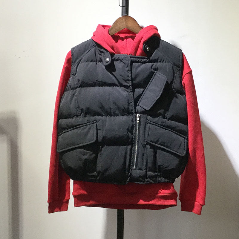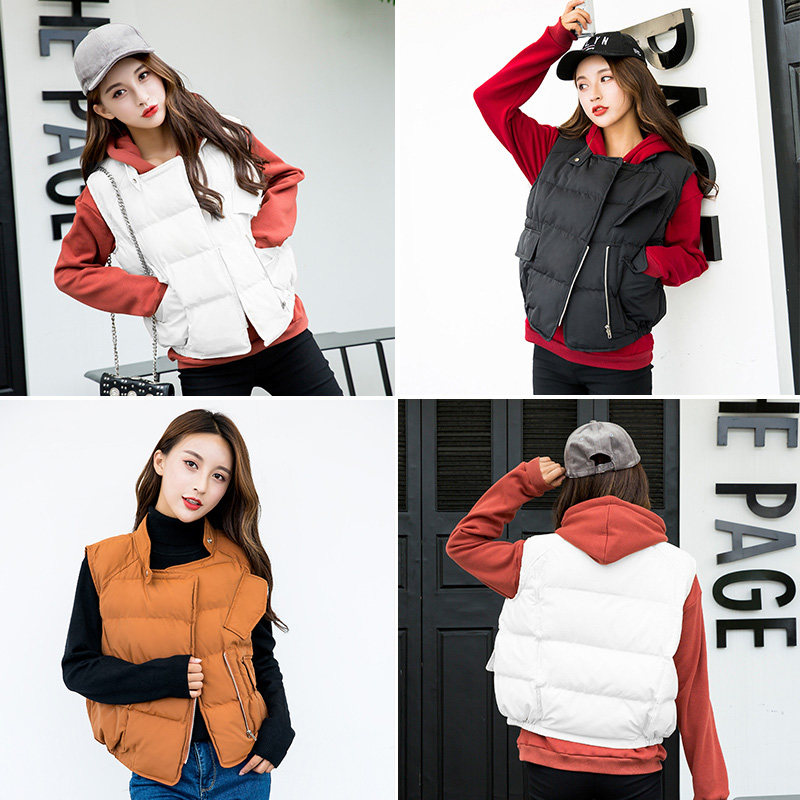 Down cotton waistcoat Vest Girl Short small Substudent Spring autumn Winter Korean version loose Shoulder Cotton Jacket Jacket Jacket