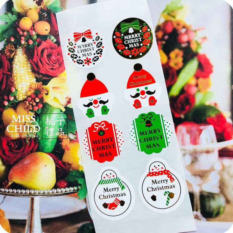 8 Stickers Christmas Packaging Stickers Bronzing Christmas decoration stickers merrychristmas mini stickers