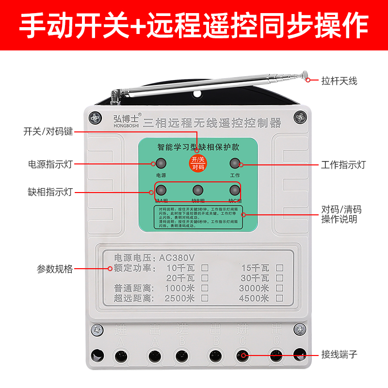 Lion husbandry wireless remote control switch 380V three-phase high-power pouring water pump remote control remote power control switch