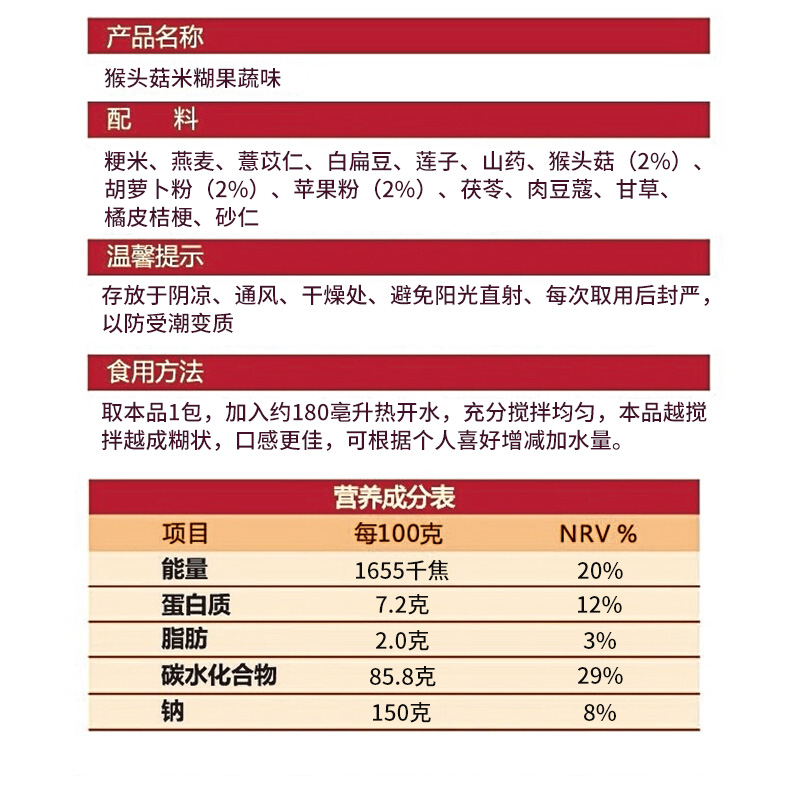 Fruit and vegetable taste monkey head mushrooms rice burnt for 16 days 480g
