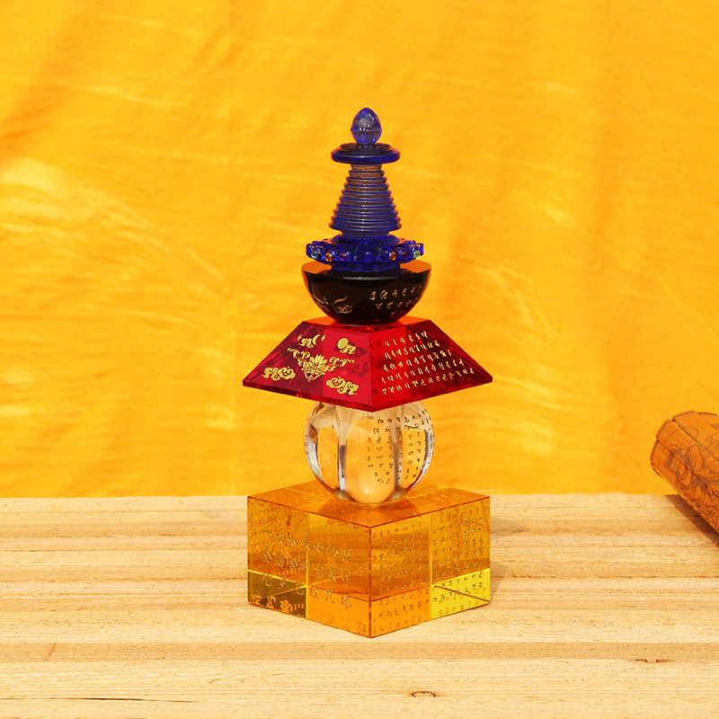 All Tathagata Heart Secret Treasure Koinin Dharani Mantra Tower Crystal Stupa Stupa Large multicolored 23 cm