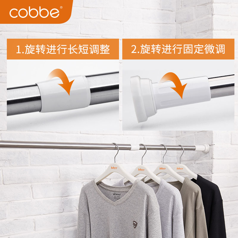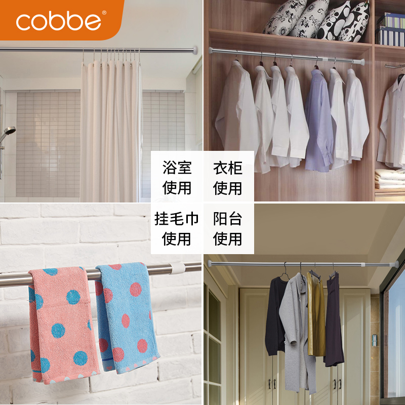 Cabe telescopic rod hole-free installation stainless steel shower curtain rod curtain rod bedroom wardrobe hanging clothes cold clothes drying rod
