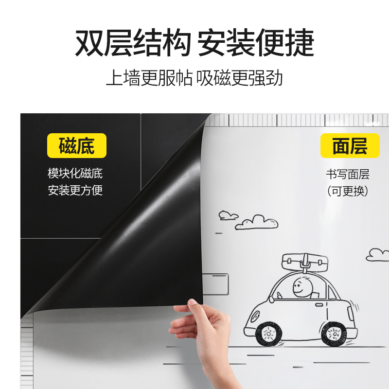 Magnetic whiteboard wall sticker Graffiti wall film Children's environmental protection blackboard wall Household blackboard sticker Rewritable removal self-adhesive primary school writing double whiteboard Office classroom meeting magnetic tape glue