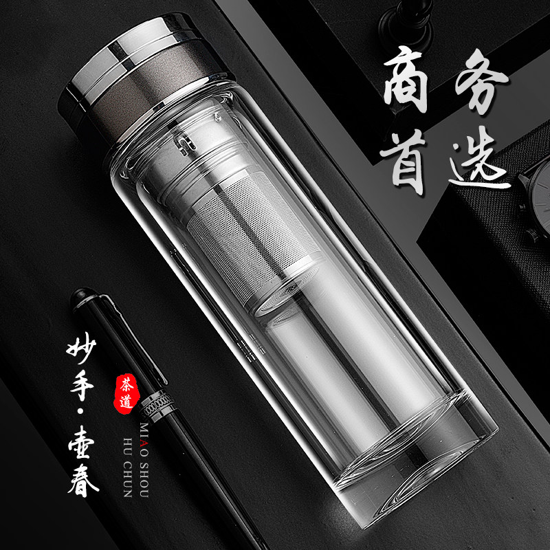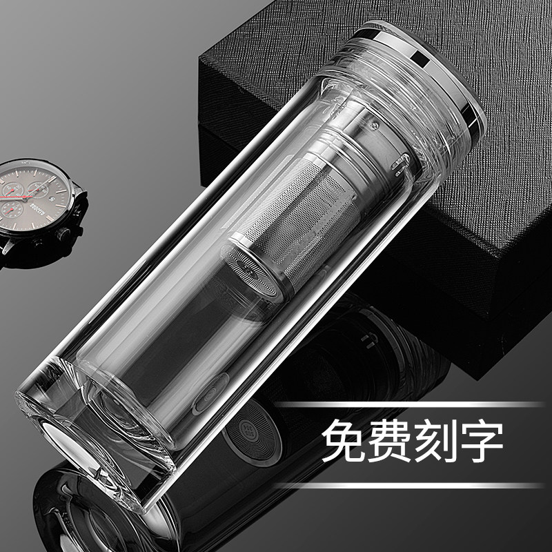 High-grade double glaze male insulated transparent water cup crystal bubble teacup engraving custom logo gift sent to the leader