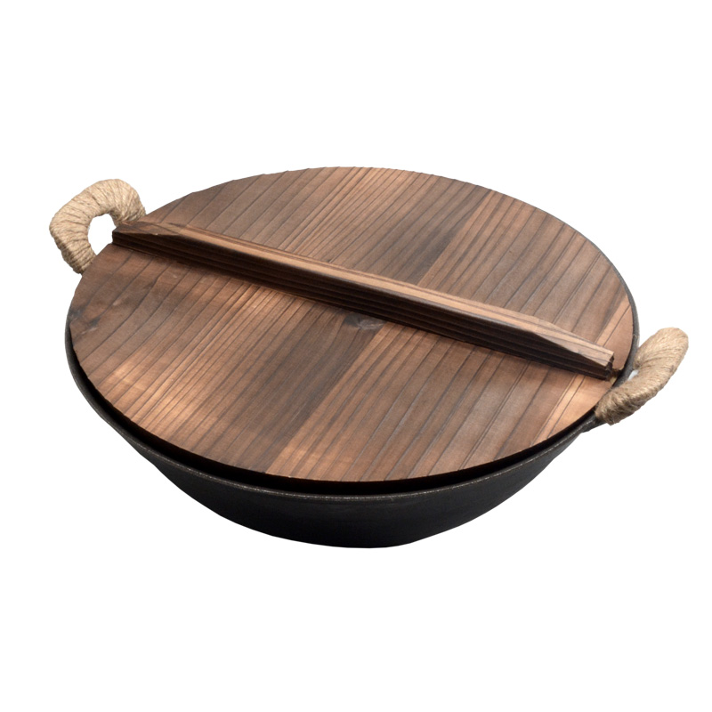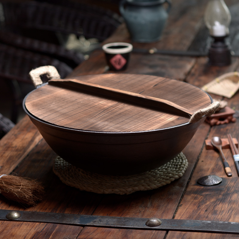 Liang's father and son double-ear pig iron pot Old-fashioned round bottom large iron pot Household thickened cast iron wok uncoated non-stick pot