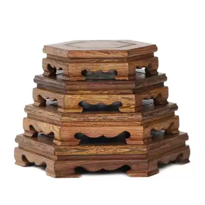 Solid Wood hexagonal purple clay pot tea set base mahogany chicken wing Wood vase flower bonsai wooden seat