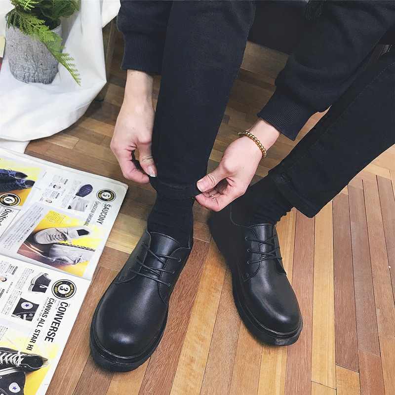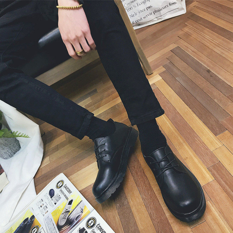 Ulzzang small leather shoes men and Korean edition of round head increase Martin shoes and English big shoes Harbor Harbor Tide shoes
