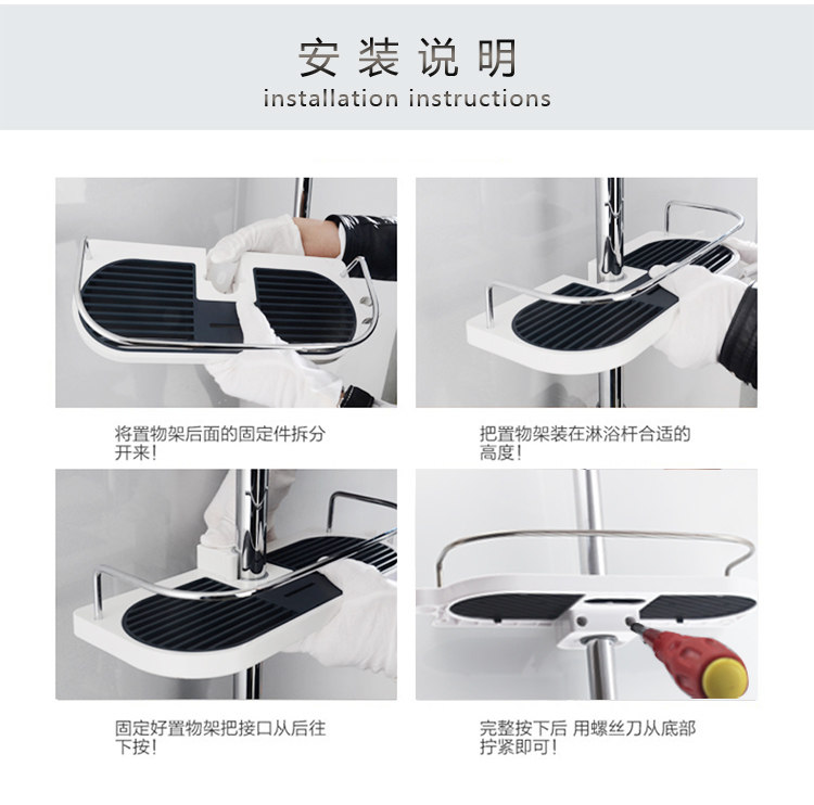 Straight-button non-perforated shower lifting rod shelf Powder room detachable washing nozzle tray Fragrant fertilizer shelf