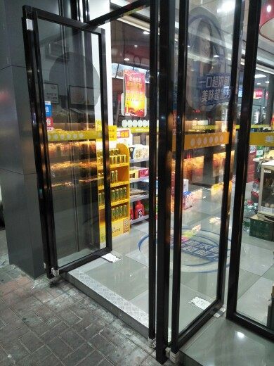 Dongguan stainless steel frame tempered glass floor pop-up door glass sliding door office shop hotel entrance door