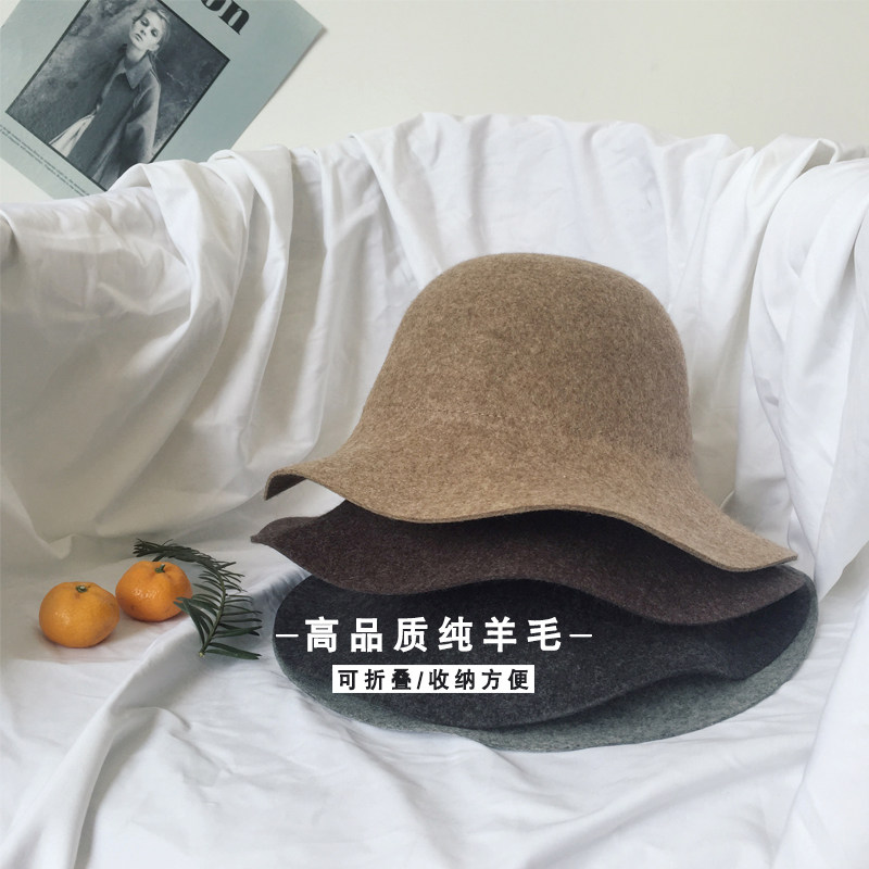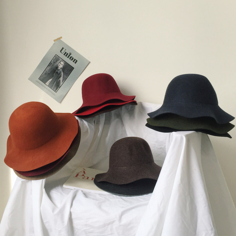 Pure wool Hat Woman Autumn Winter Retro Yinglun Little courtesy hat Han version 100 lap of the family of the family with a Fisherman's hat on the side