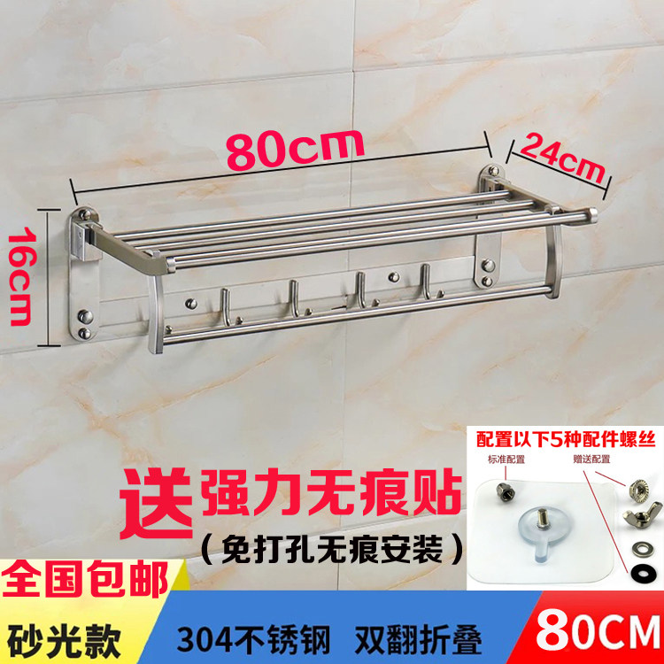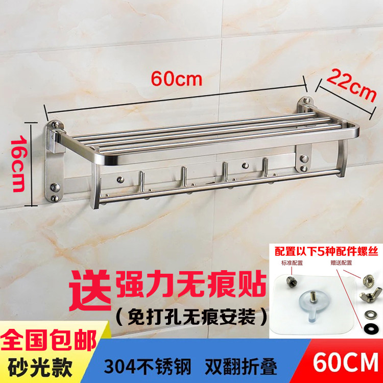 Toilet folding towel rack Stainless steel non-perforating bathroom shelving Floor 2 wall hanging toilet bathroom pendant