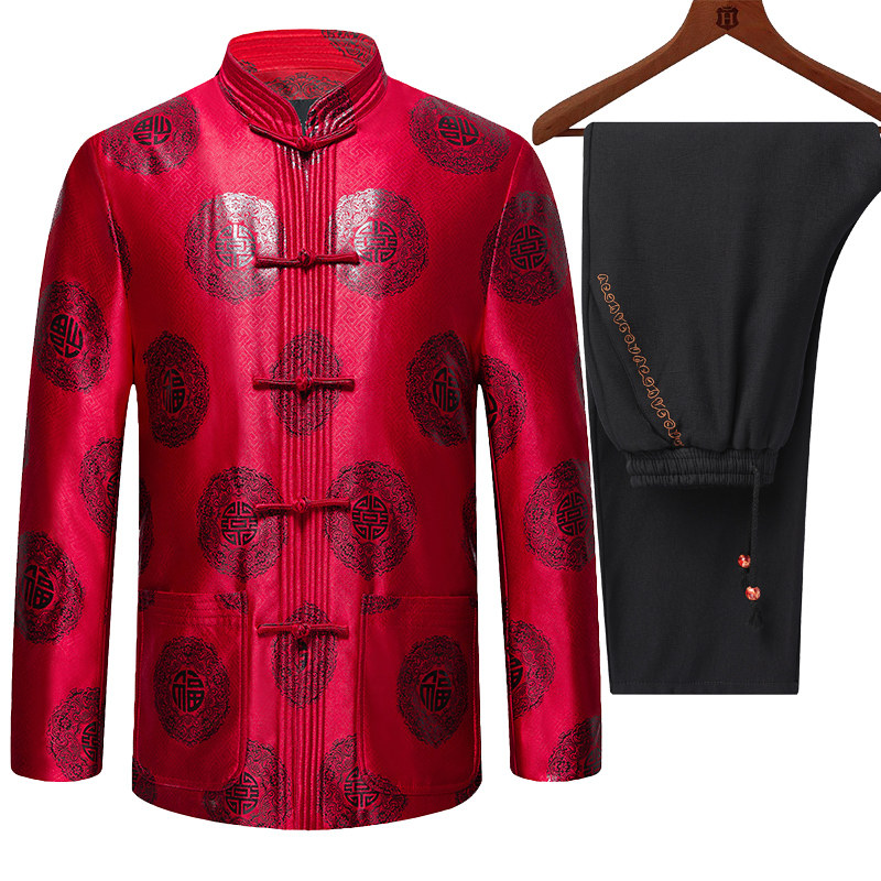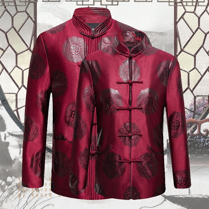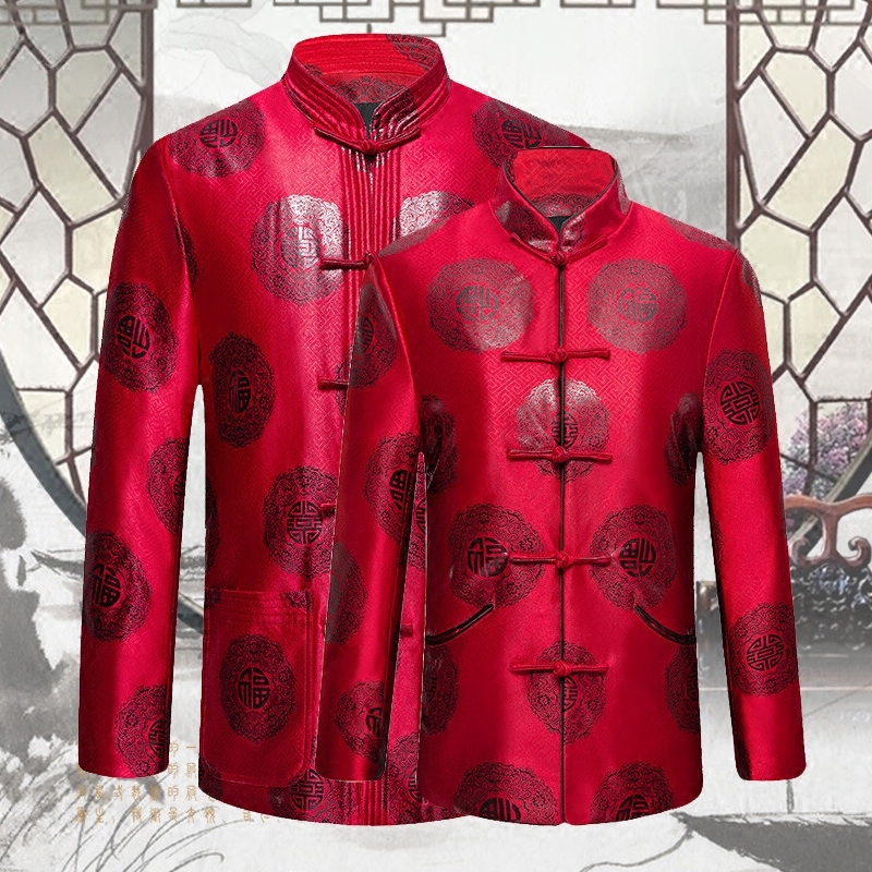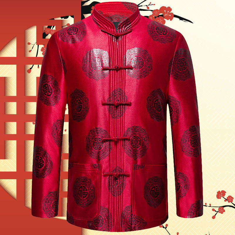 Old man's birthday Tang suit men's jacket winter middle-aged and elderly cotton-padded jacket thickened plus velvet cotton-padded coat for the wedding year of life