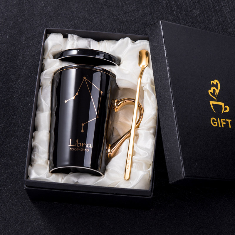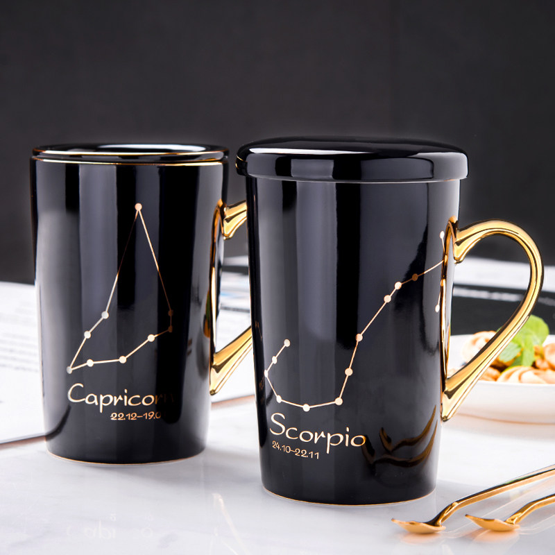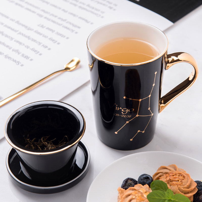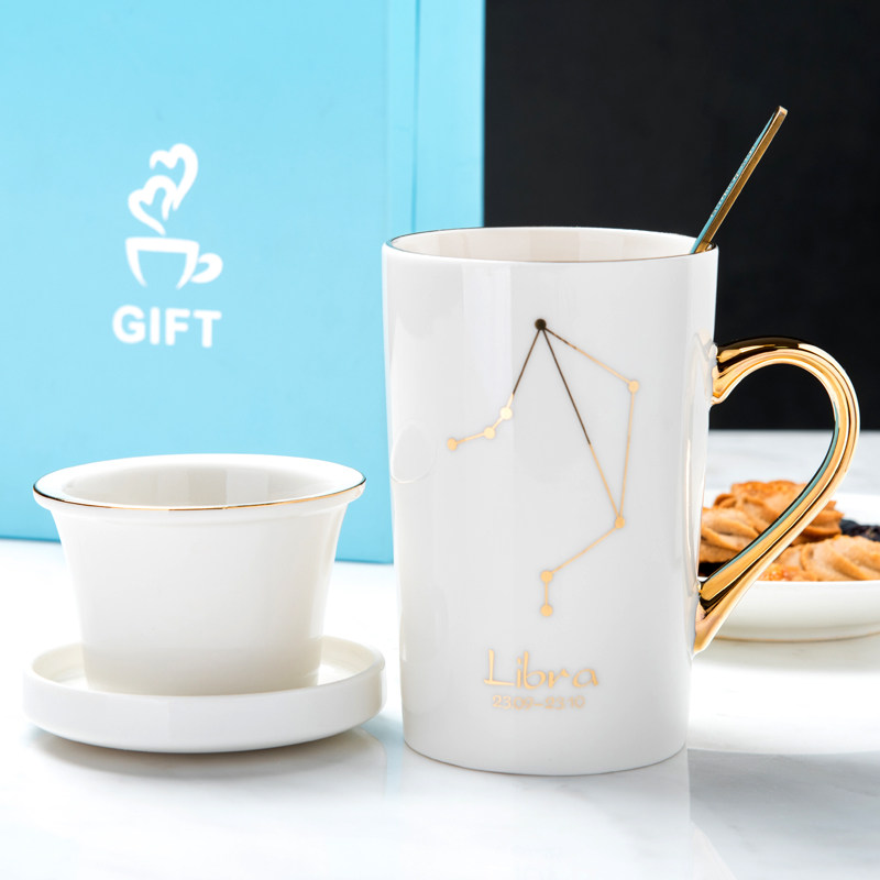 Creative ceramic Teacup Filter Personality mug with lid Spoon Simple coffee cup Office water cup Gift box