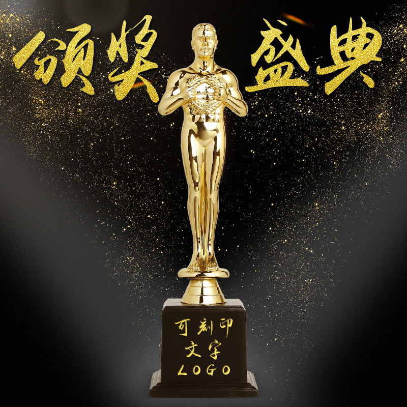 Oscar small Golden Man trophy custom high-grade metal Emperor trophy production creative angel pattern embroidery annual meeting trophy