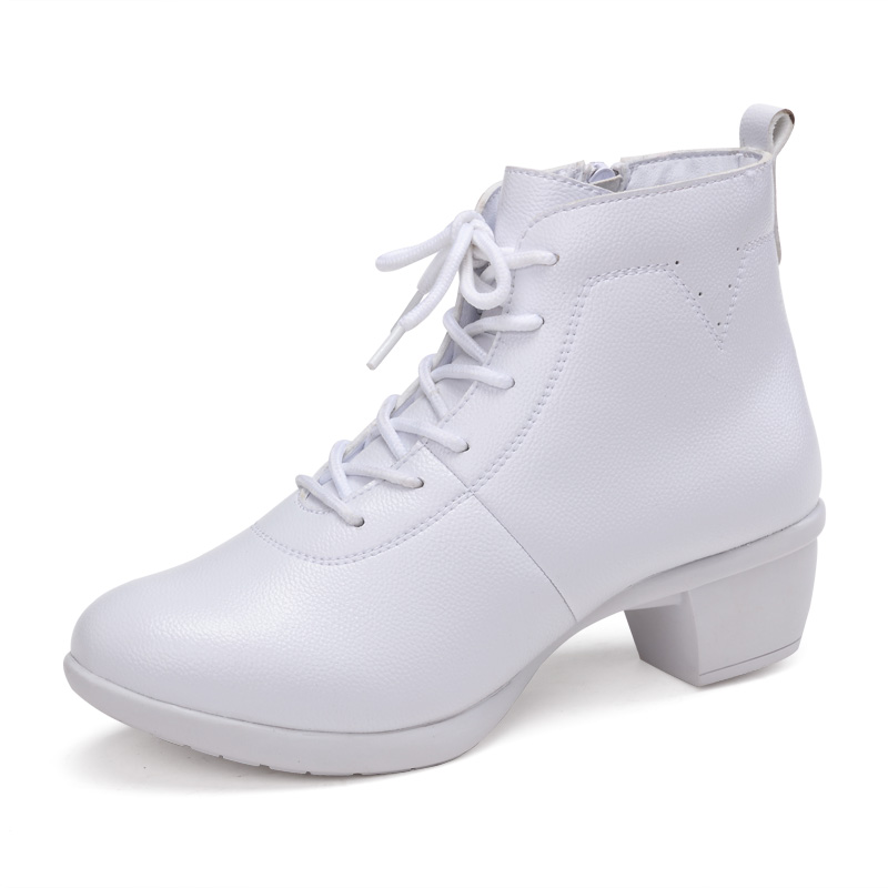 Allaway Winter Dance Shoes Woman Real Leather Soft Bottom Square Dance Shoes White Water Soldiers Dance Shoes With Jazz Dancing Shoes