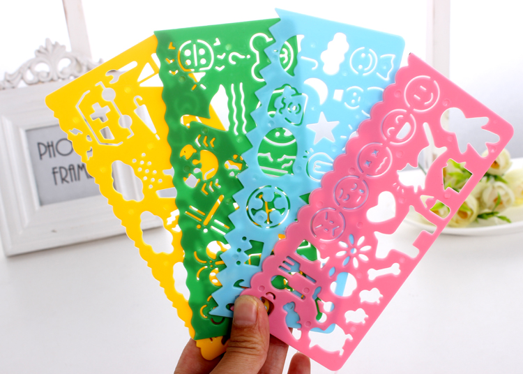 10 Suit Fresh Creative Elementary School Students Stationery Flowers Ruler Children Painting Templates Fine Arts Drawing Tool Sets