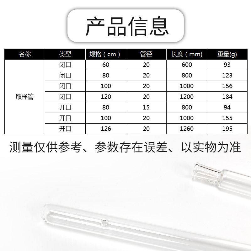 Glass sampling tube 1 2m laboratory sampling glass liquid sampling tube oil barrel sampling tube 100cm pipette