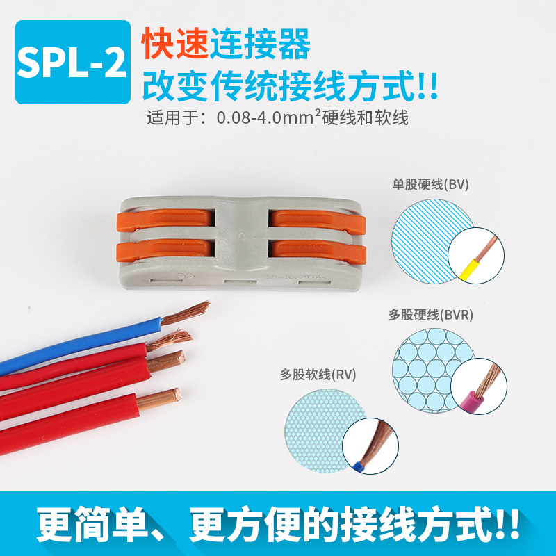 Wire connector Universal quick connector 2-position docking terminal Soft wire Hard wire universal SPL-2 10pcs