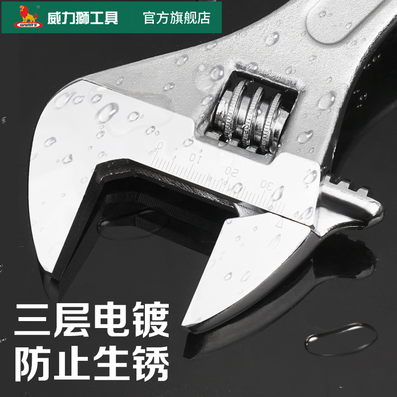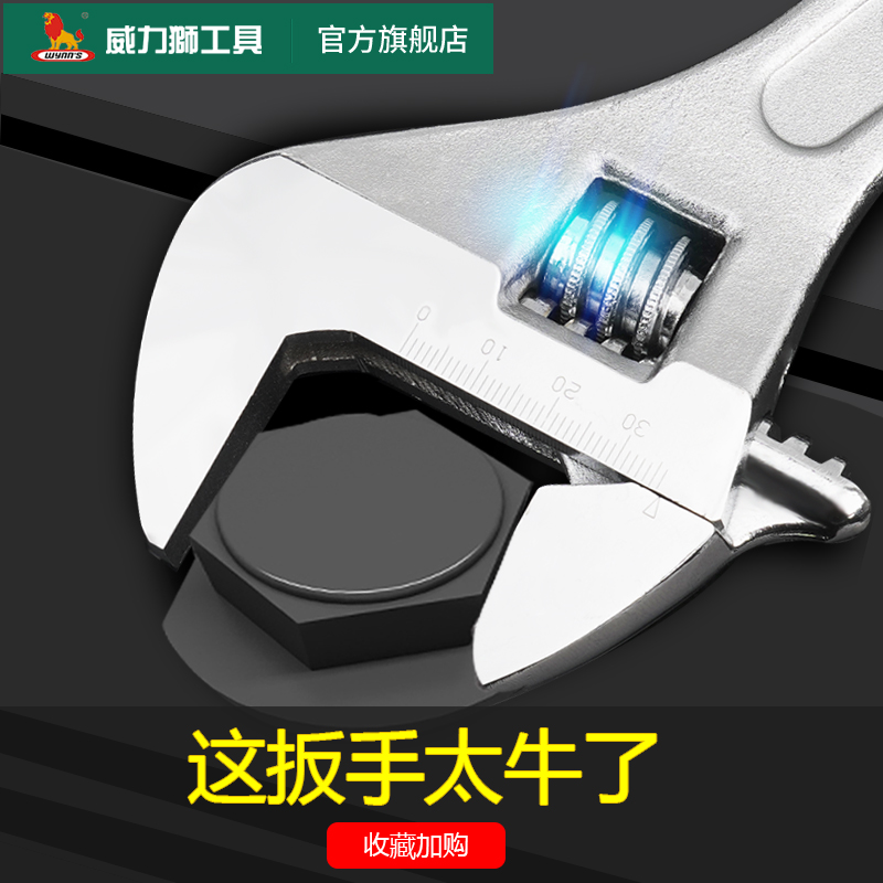 Mighty Lion Black Movable Wrench with Scale Large Open Mouth Wrench Chrome Multifunctional Active Wrench