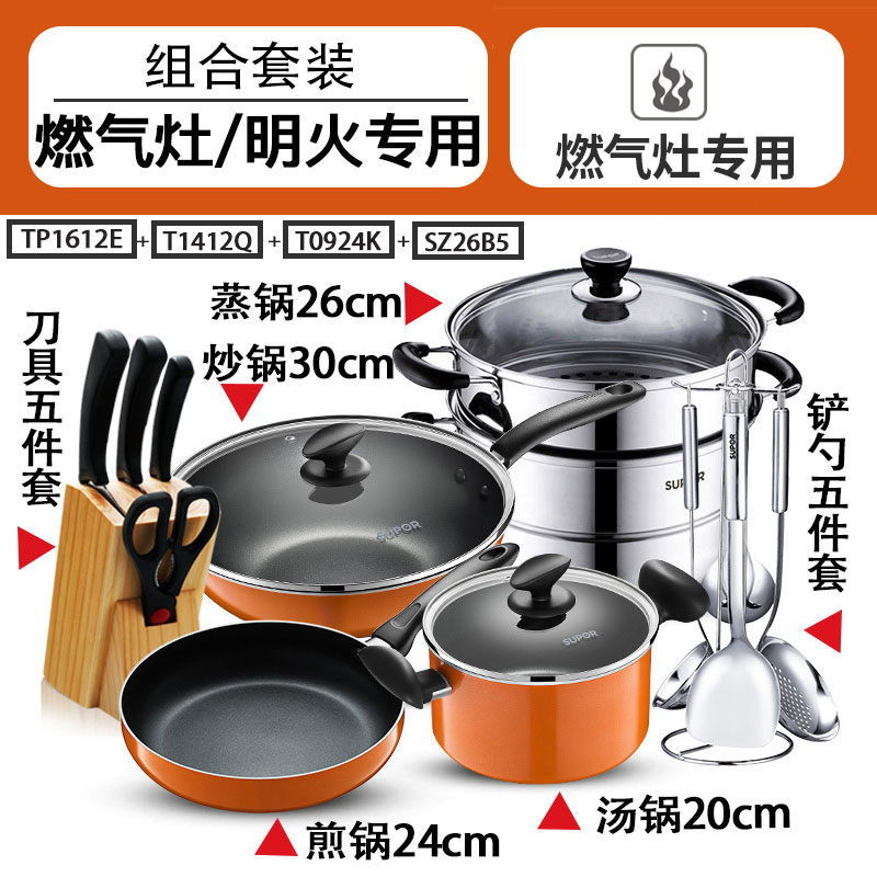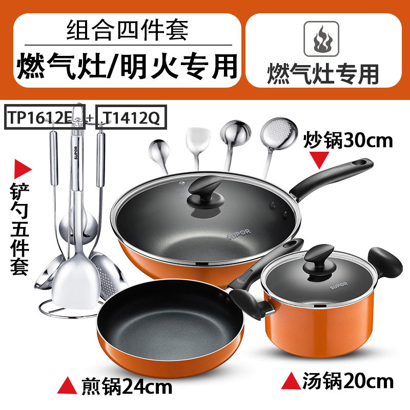 Black two-piece set (wok, frying pan) Silicone spatula Orange two-piece set (wok, soup pot) Silicone spatula Orange three-piece set (wok, frying pan, soup pot) Silicone spatula Red three-piece set (
