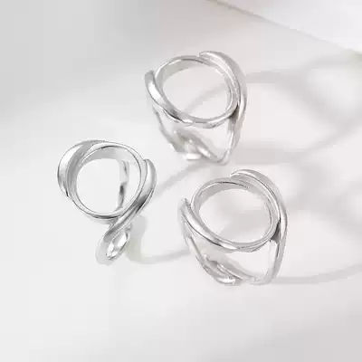 2021 new S925 sterling silver simple round ring empty trust female inlaid beeswax amber jade silver trust ring trust 8M