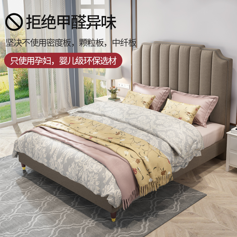Luxury family Hong Kong-style light luxury new American backrest fabric bed 1 8m modern minimalist net red ins wind double bed
