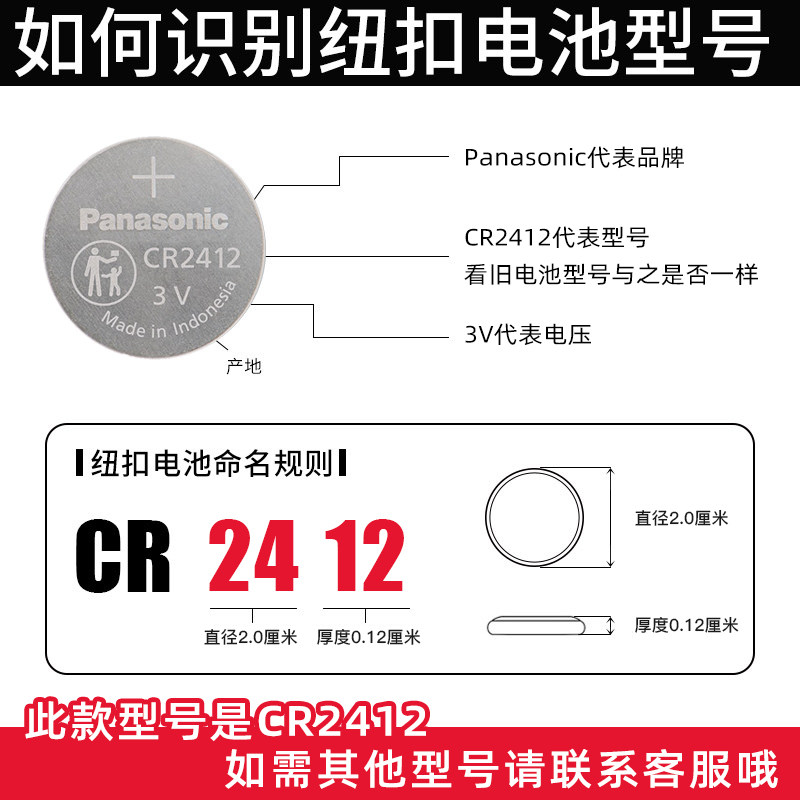 Panasonic CR2412 button Battery 3v suitable for Ling Chi Toyota New Crown Car Card Key Remote control Lithium Electronic Beijing Hyundai Jens Import button 2412