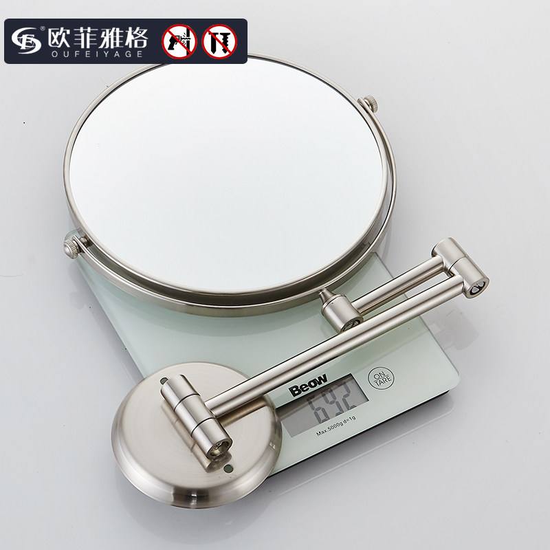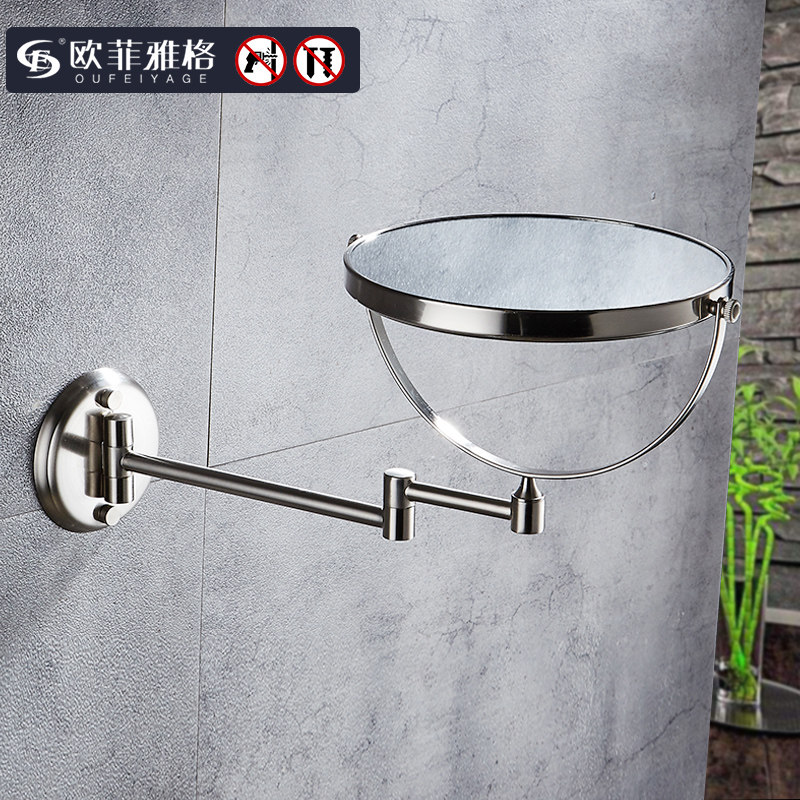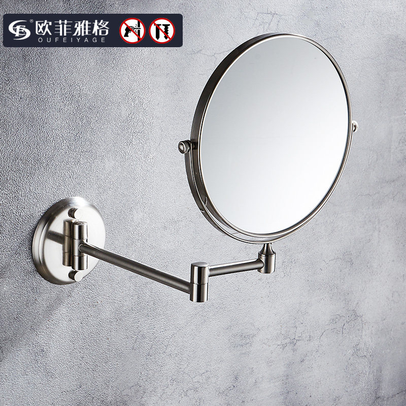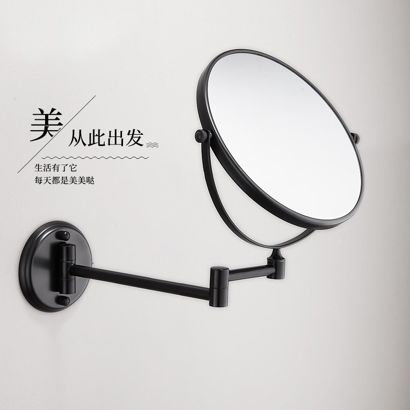 Gun Gray Bathroom Makeup Mirror Free Punching Makeup Room Folding Rotary Telescopic Mirror Double-sided Magnifying Wall Mounted Beauty Mirror