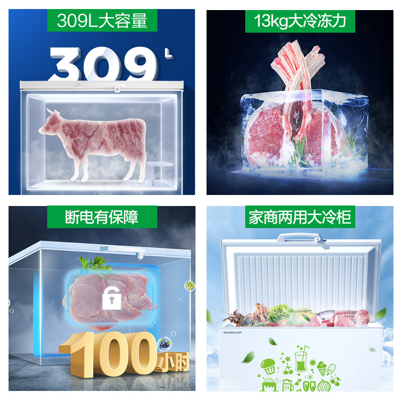 Rongsheng 309 liter freezer freezer commercial household single temperature large capacity refrigeration level energy-saving refrigerator horizontal single temperature