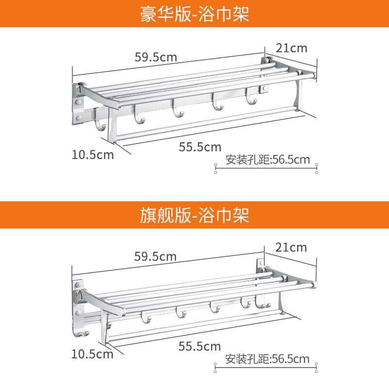 Bathroom Hardware Pendant Hair Towel Rack Space Aluminum Bath Towel Rack Bathroom Makeup room Perforated Shelf Wall-mounted