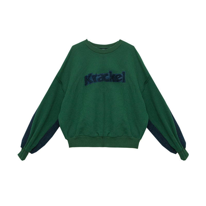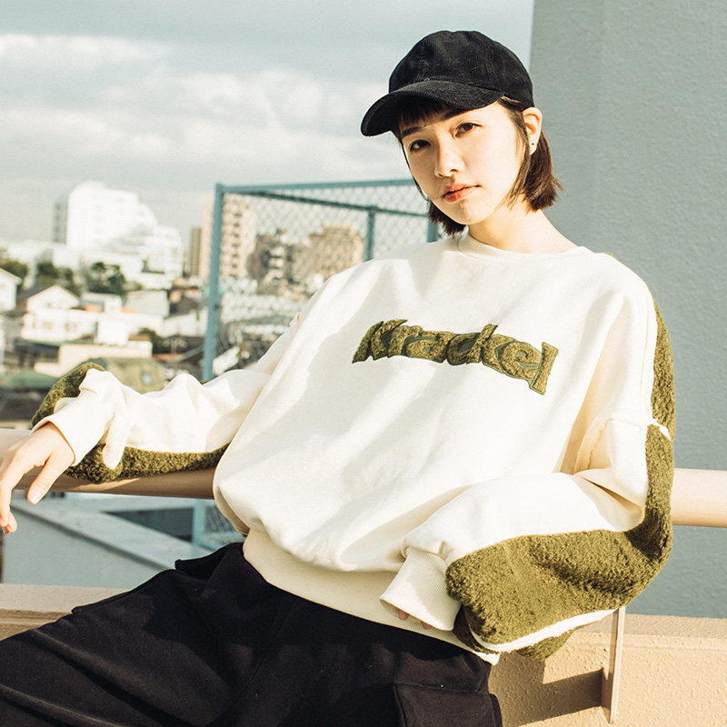Q1 Japanese original design lamb wool stitching letter embroidery pullover casual top 1502